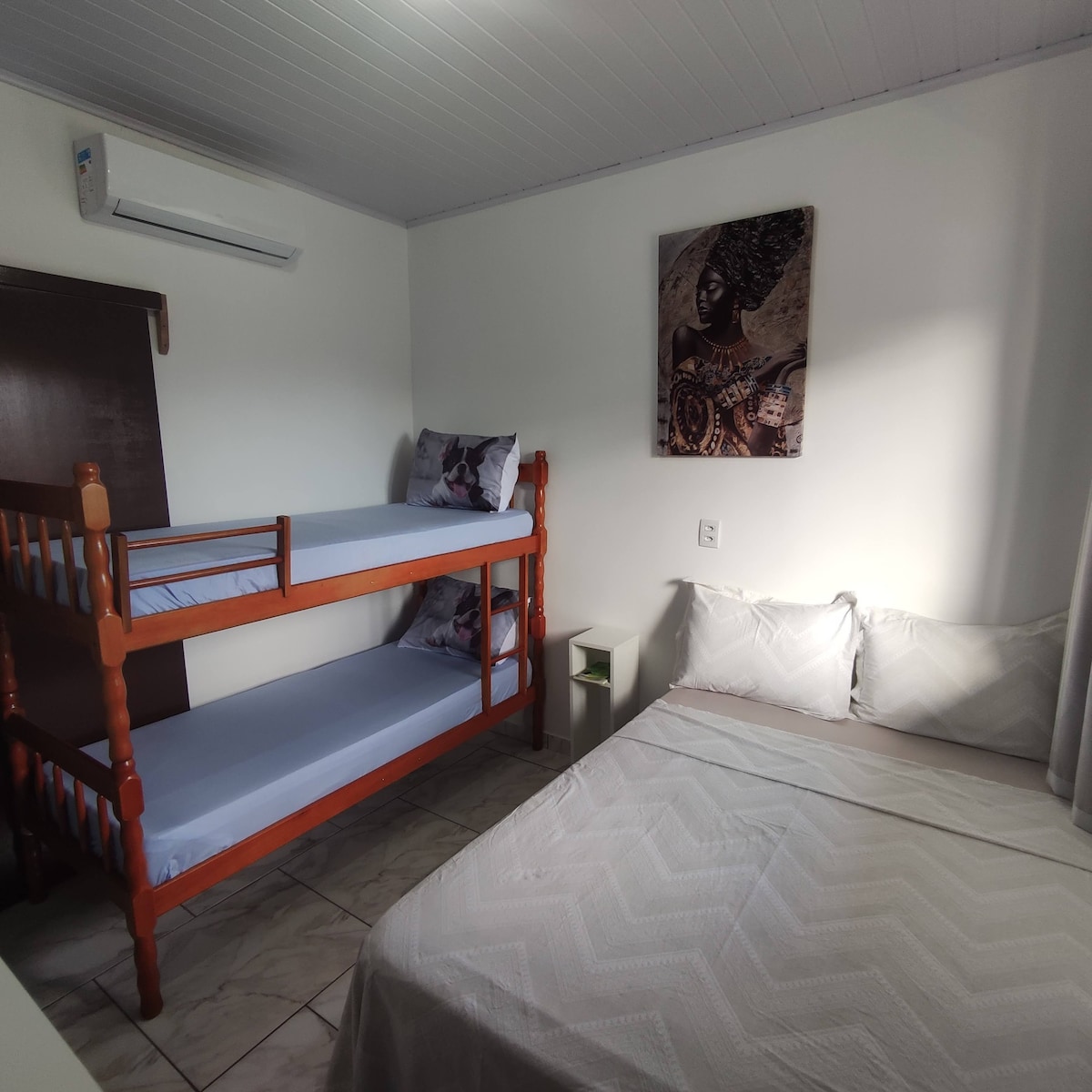O espaço fica no segundo piso, é aconchegante e ideal para relaxar em seus dias a beira a mar e pós-praia! Com uma localização a menos de 800m da praia, lugar simples, bem cuidado, calmo e arejado! O espaço comporta de 2 a 5 pessoas. (Verifique a disponibilidade para hóspedes adicionais nas datas.) O ambiente é familiar, portanto não é permitido barulho após às 22h! Contém pátio para estacionamento e está próximo a supermercados, conveniências, lanchonetes, restaurantes e praias.