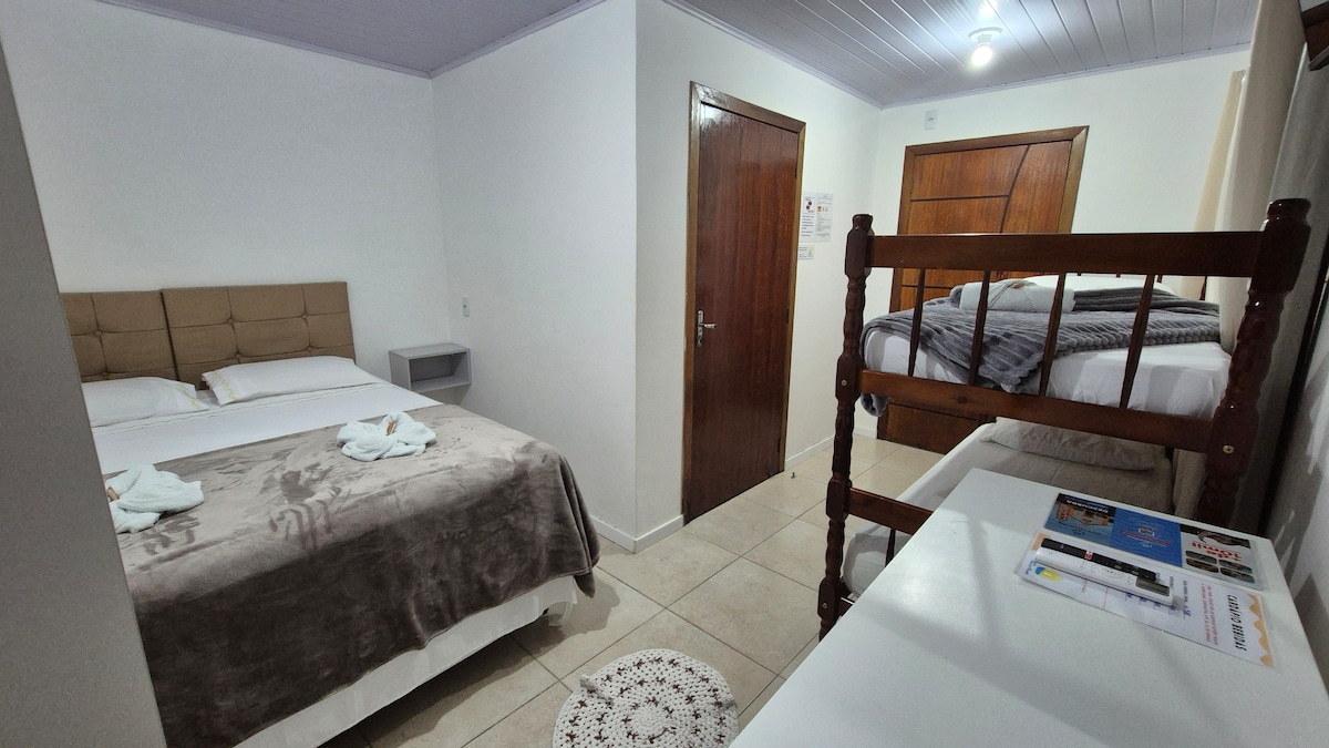 Nossas suítes são ideais para aqueles que procuram um ambiente simples, organizado e com baixo fluxo de pessoas. Para estadias médias e curtas, aos que desejam visitar ao parque do Beto Carrero, praias ou estejam a trabalho na cidade. Estamos localizados a aproximadamente 5 á 10 minutos de caminhada até o parque Beto Carrero World, e a mesma distância da Praia mais próxima. Para sua comodidade possuímos estacionamento, área com copa compartilhada entre todos os hóspedes e recepção.