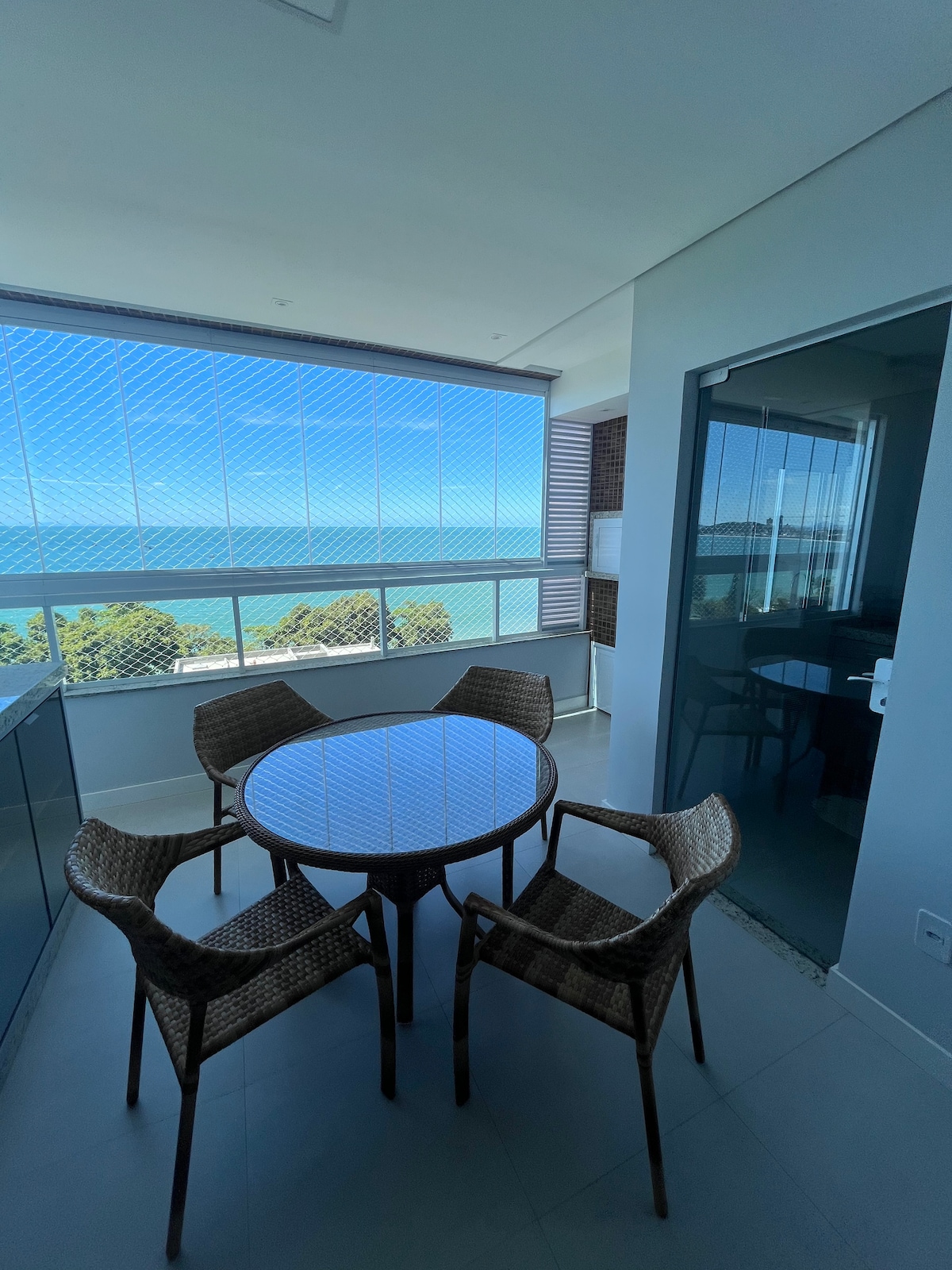 Hospede-se em um apartamento novo, elegante e super confortável com uma vista espetacular p/ o oceano e localização perfeita a poucos passos da praia e a apenas 5 minutos do Beto Carrero World. **Super diferencial para seu inverno em Penha, Ar condicionado quente e frio** O que você encontra por aqui: • 2 quartos aconchegantes • Sacada gourmet • Cozinha completa • Ar-condicionado Quente e Frio • Wi-Fi e Smart TV Perfeito para famílias!. Reserve agora mesmo e sinta-se em casa à beira-mar!