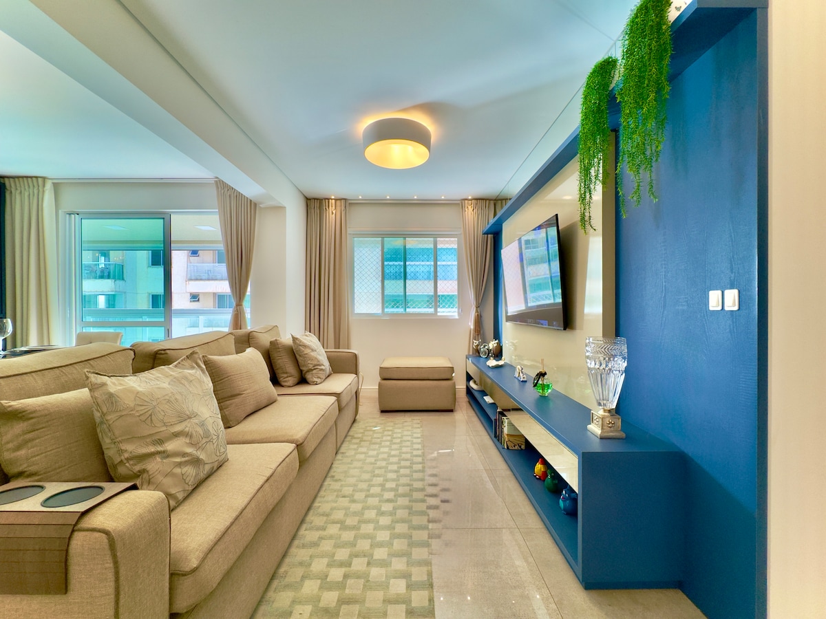 Relaxe neste espaço de bom gosto, conforto e tranquilidade. * Sala c/vista Mar e por do sol * Cozinha equipada p/a preparação de um jantar de chef, como p/um lanche rápido. Louças, taças, panelas, airfreyer * Banheiros c/ducha a gás * Suíte: Acorde olhando o mar, cama Queen, colchão king koll, muito confortável * Quarto/Escrit. Bancada p/trabalho c/ vista mar e Cama casal box * Smart TV c/assinatura de canais * Internet * Ar Condicionado em todos os cômodos Um luxo