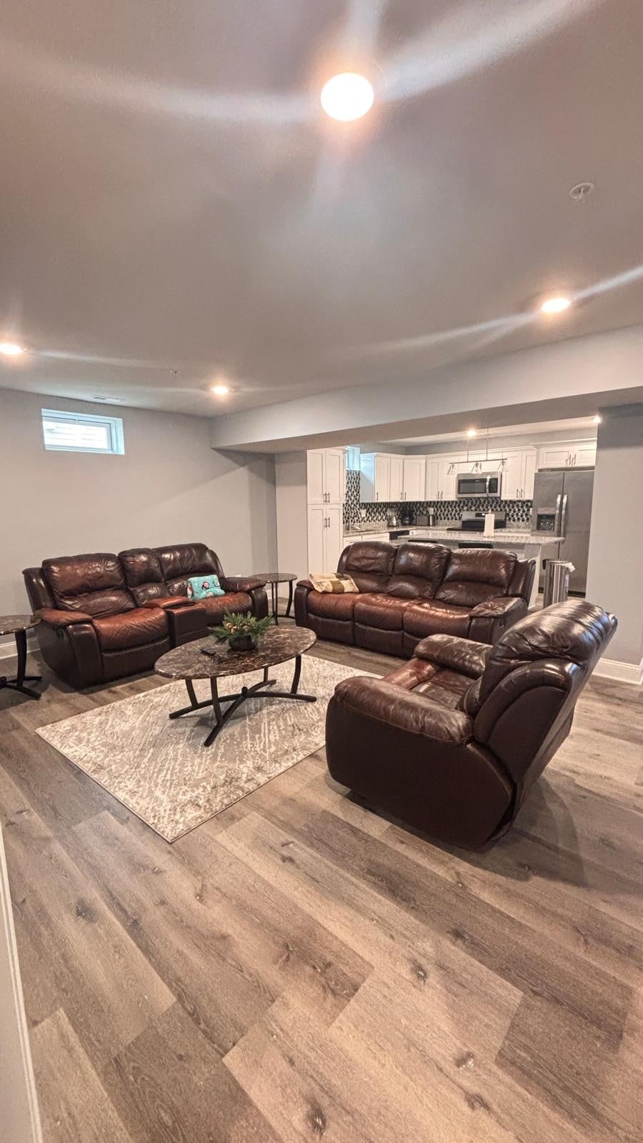 This is a spacious lower level of a newly built home. This private guest area has a lounge, dinning, and kitchenette in addition to a bedroom and a bathroom. Guests share only the main entrance of the townhouse with owners who live upstairs. This private decorated space includes a smart TV, comfortable seating, dining for 4, microwave, coffee maker, full refrigerator, toaster/air fryer, queen bed, wardrobe & dresser. Washer/dryer available upon request. Please review house rules before booking