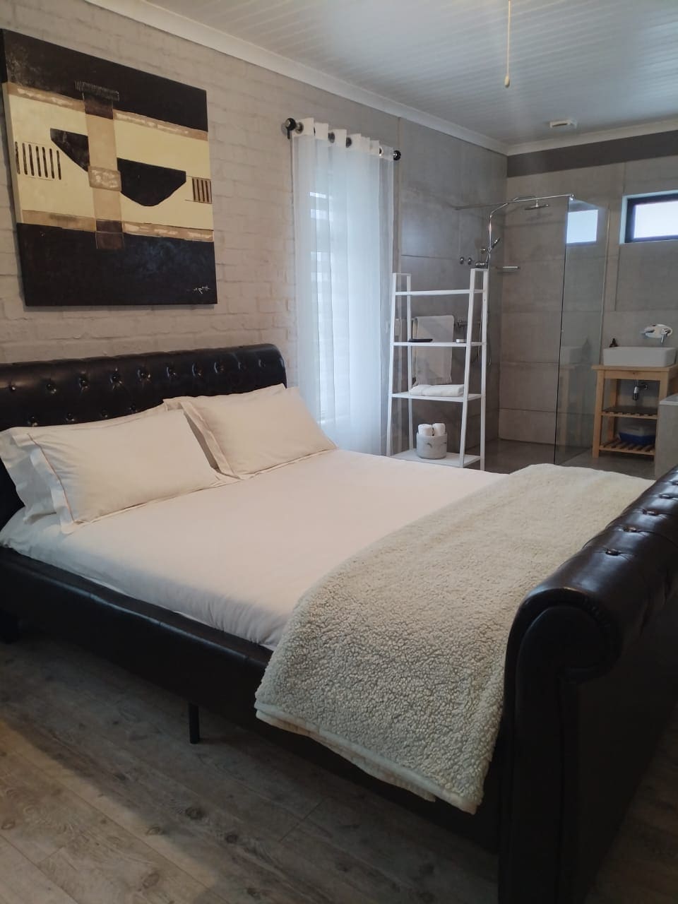 A neat comfortable flat in a peaceful neighbourhood, a 500m walk away from the Onrus to Sandbaai coastal path. Great locations for swimming, surfing, diving or just catching some sun rays. If you like mountain biking or hiking the mountains are also just around the corner. The stoep features a wood fired hot tub and fire pit and looks towards the mountains and a stand of bluegums which attracts a lot of bird life. The flat is on our property but is completely separate with secure parking.