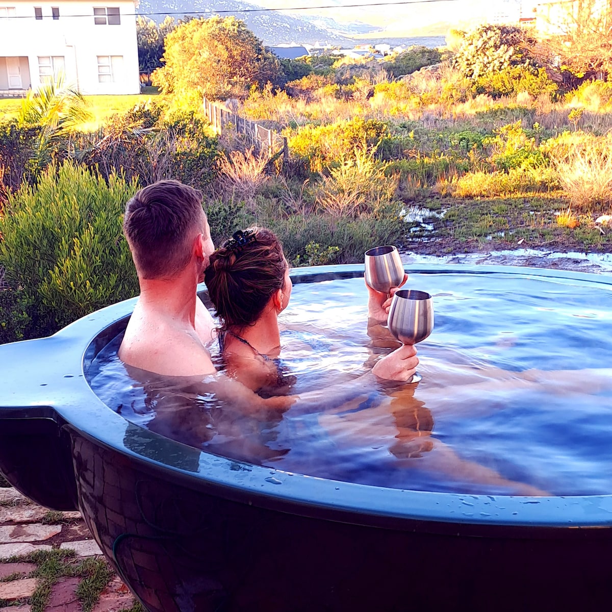 位于赫曼努斯市中心的秘密小屋和热水浴缸