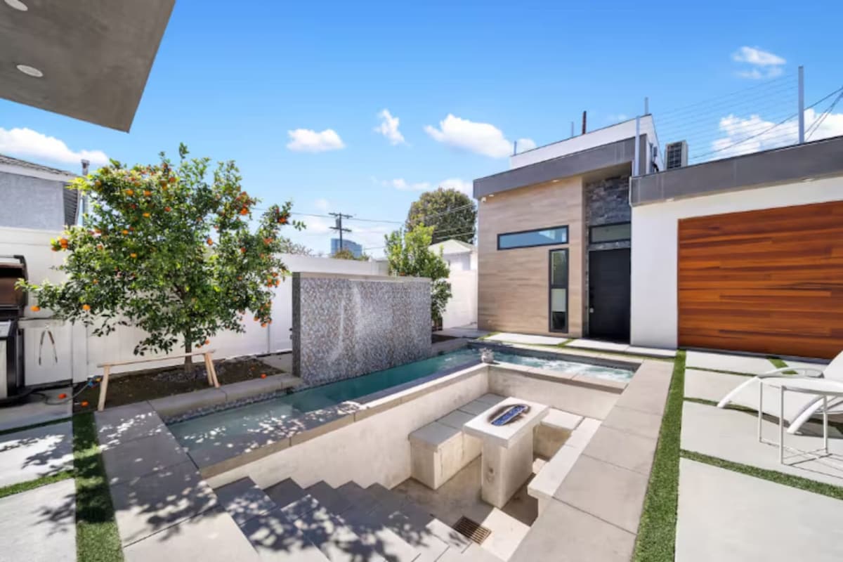 Unwind on the pool terrace of this 1919 Craftsman cottage. Soak in the hot tub or gather at the fire pit by night. Watch movies with surround sound. The renovated, open interior features hardwood floors and a flowing open-concept living space. NOTE: No parties, events, filming. No exceptions. This house is just for quiet enjoyment while you visit LA. Early check-in / late check-out generally not available due to cleaning protocol.