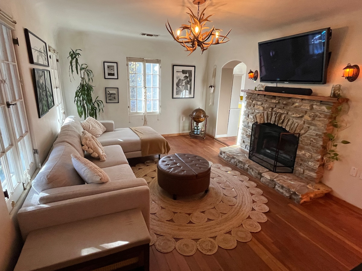 Experience the allure of Los Feliz in this fully private and well-appointed first-floor suite. Be captivated by panoramic views, and indulge in state-of-the-art amenities, from a Level 2 EV car charger, ensuring your eco-friendly transportation is catered for, to a Peloton and outdoor gym so that your fitness routine never skips a beat. Enjoy lightning-fast 1GB WiFi, relax in the hot tub, or watch your favorite movie on a 10ft projector with Dolby sound.