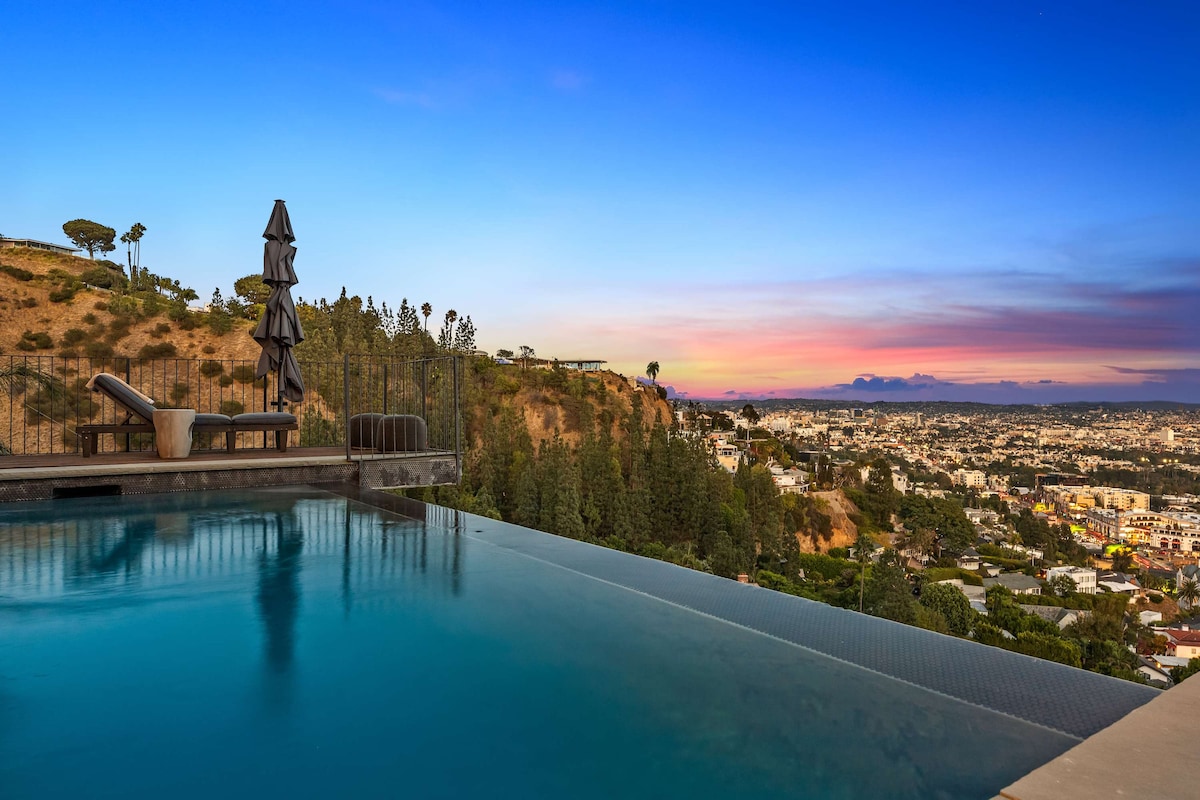 Enjoy an dream vacation in this unique new resort style home designed to feel like a vacation home in the heart of LA. The Tulum-style design, large infinity pool, abundance of outdoor spaces, and peaceful hillsides all around make you feel like you’re far away from the hustle and bustle of it all, while the spectacular view of downtown reminds you that you are in the heart of the city of Angels. Just 20 mins to LAX, beaches & downtown LA, even less to hip Culver City.