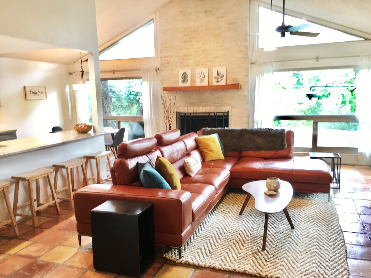 Beautiful home built in 2021! Furnished in the style we call "mid-century fiesta" by a local interior designer. This home offers 3 bedrooms, 2.5 bathrooms, 2 living rooms, and a beautiful third story patio. Mahncke Park is nestled next to Alamo Heights just down the road from DT and many attractions that await you. You have The Pearl District, The Alamo, the famous Riverwalk, Botanical Gardens and many museums. Fully equipped kitchen, two smart TVs, Wifi, keyless entry and parking.