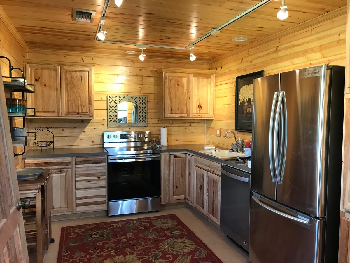 This Log Home is located on Hill Country Riding Academy's ranch. It is only 750 sq' with an open space downstairs with a queen bed and a twin trundle in the loft above. It has recently been completely remodeled and boasts a cute kitchen with stainless appliances and a bathroom with a soaking tub. The log house is very private, located behind the ranch owners' home. It has a beautiful north facing view of ranch land with an abundance of wildlife. And is only 5 miles from New Braunfels.