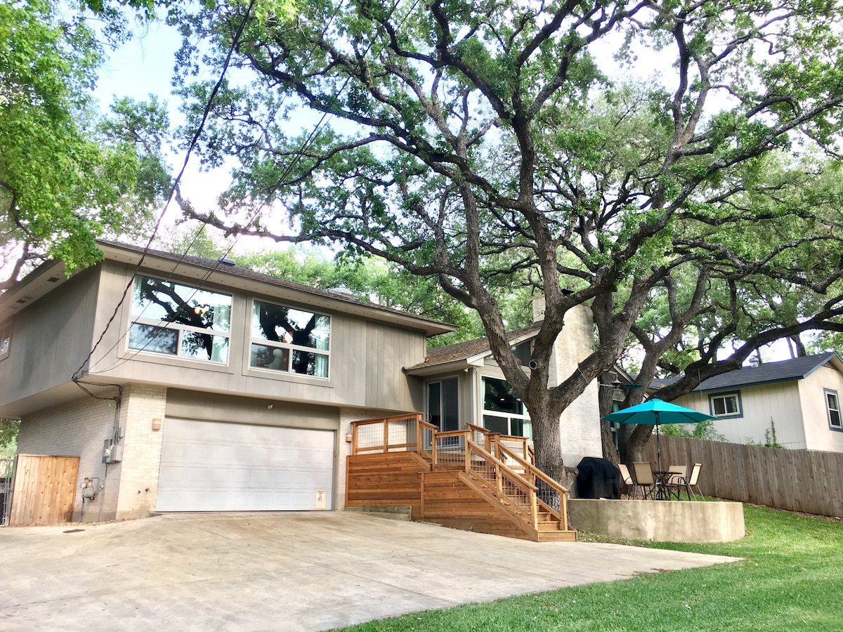 This fun & funky 1970's home is nestled in-between Beautiful mature oak trees on a quiet cul-de-sac. It's a 3BR & 2 BA in N. Cntrl SA conveniently located close to the airport, restaurants, groceries, mall, and highways to get you quickly to SA's most famous attractions- The Alamo, The River Walk, The Pearl, & SA Zoo. Highlights include Off Street Parking, Fully Updated Kitchen, Stylish Furniture, Vaulted Ceilings, Fireplace, Pvt Backyard, Patio, Gas Grill, Master BR & New BA, W/D, C-Air/Heat.
