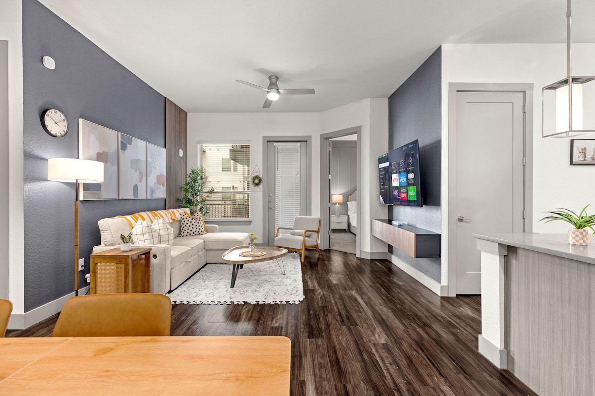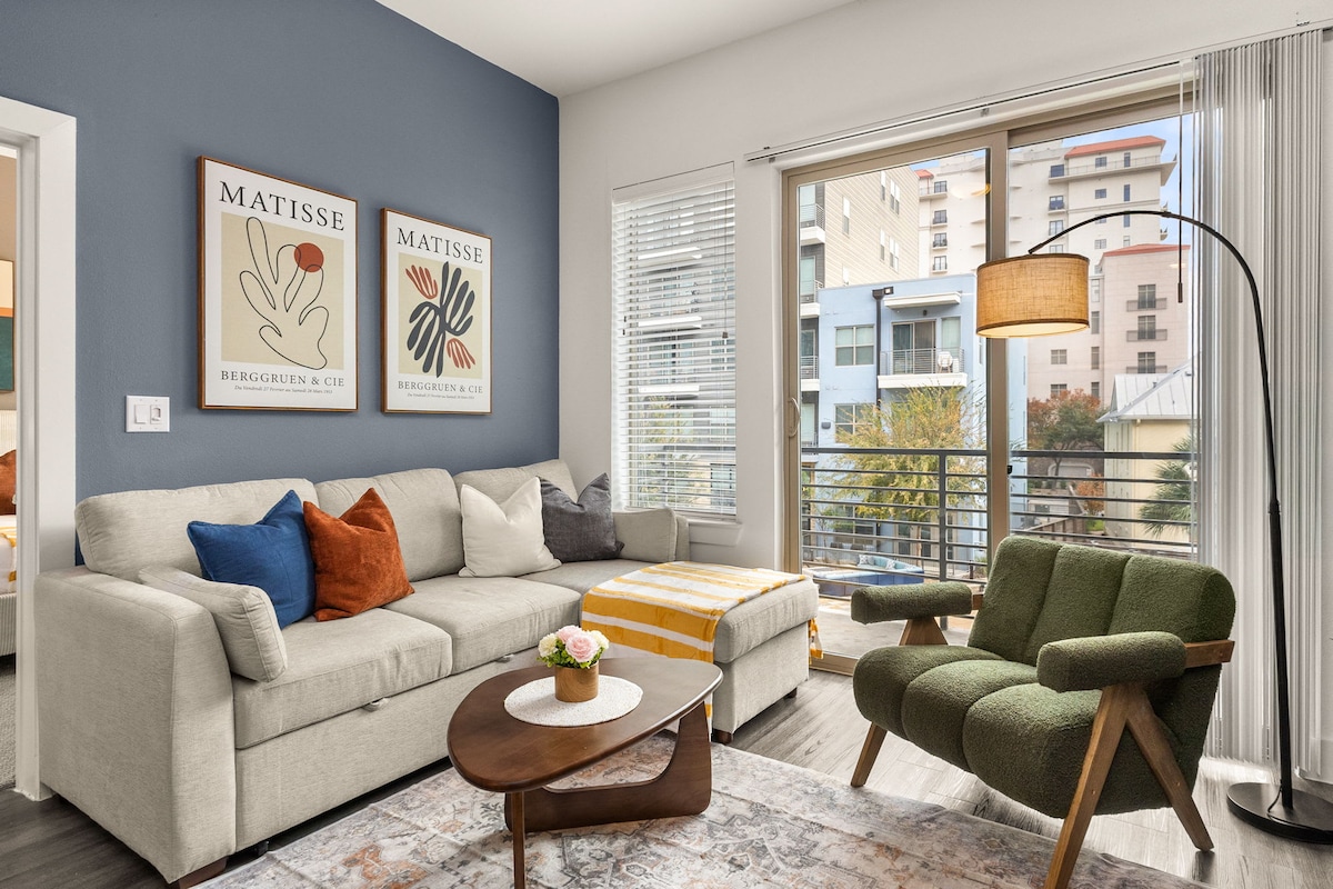 Step into resort-style living at this designer 2BR/2BA flat in San Antonio - Zenful Affirmations. Featuring gated access, a sparkling outdoor pool and modern gym, plus comfortable furniture, this apartment is ideal for long stays. Everything’s included — all utilities, fast Wi-Fi, kitchenware, cleaning supplies, full-size washer/dryer — so you can settle in with zero hassle. Pet-friendly, too! We Look Forward To Welcoming You To Zenful Affirmations!