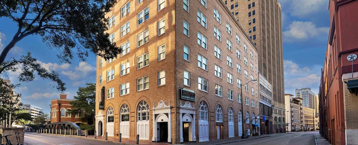Right in the heart of downtown, welcome to the heart of San Antonio. Just steps from the iconic Riverwalk, across from Main Plaza, and a short walk to The Alamo. Enjoy skyline views from 1Watson Rooftop Bar, start your mornings with a European-style breakfast, and bring your pet along—we’re pet-friendly. With free Wi-Fi, walkable access to top sights, and thoughtful design throughout, this is where your San Antonio stay begins. ✨