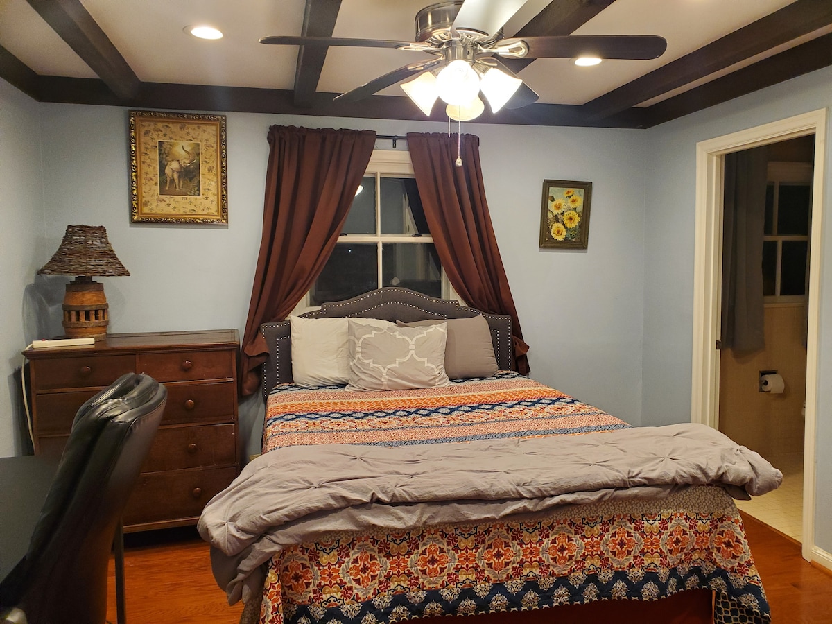 This room has 2 smart tvs so you can watch what you want. One being a 65" curved Samsung with soundbar and subwoofer.The room stays ice cold during summer and super warm in winter. Guest bathroom has a Jolie filtered showerhead. Free wifi . I'm a very laid back host and the house stays quiet all day. I have cats and a german shepherd.420 friendly, pet friendly. clean freaks and perfectionist, please skip to the next place or go get a hotel at the hampton.