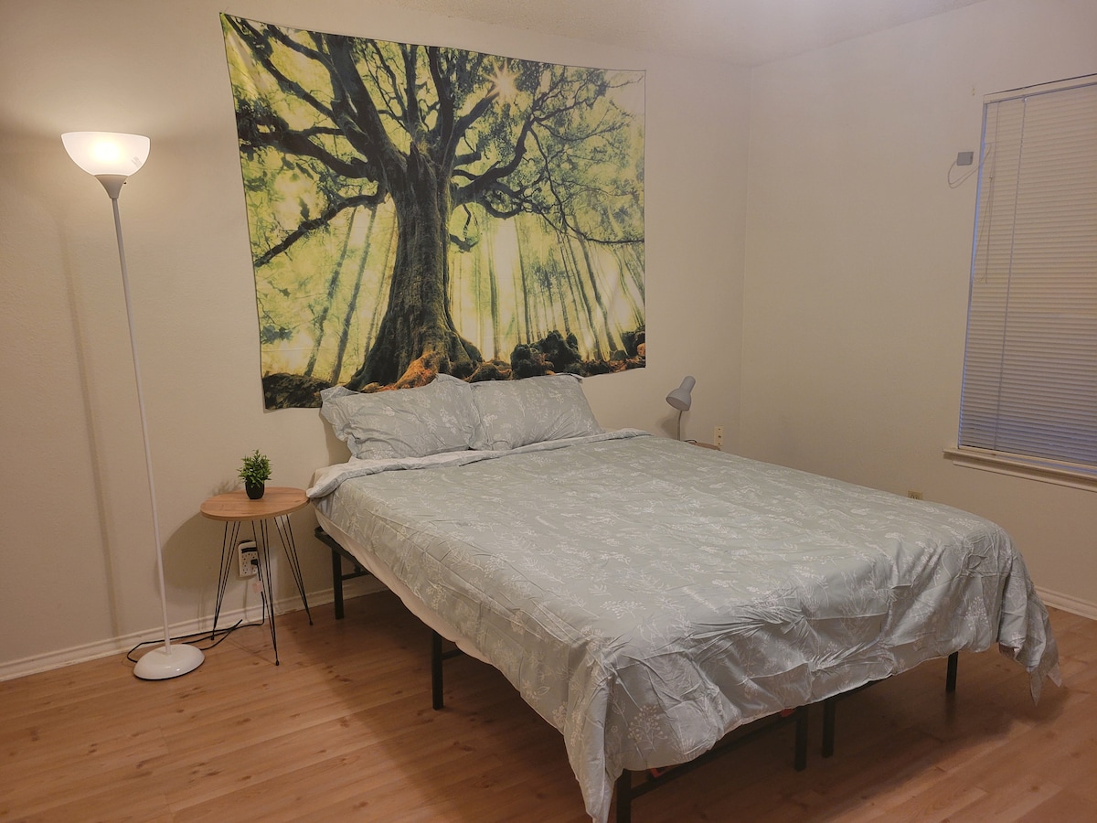 Agradable apartamento nuevo, tipo estudio con puesto de estacionamiento frete al lugar. (lado izquierdo) tiene cama matrimonial y un sofá cama, en un área muy segura al este de la ciudad de San Antonio. 10 minutos del Hospital, 10 minutos del reconocido centro comercial la Cantera y los parques tematicos SeaWorld y Six Flags Fiesta Texas. Ven a pasar un tiempo con tu familia y siéntete en casa, Ten en cuenta que este apartamento es para un ambiente Familiar, para familias de viajes o negocios