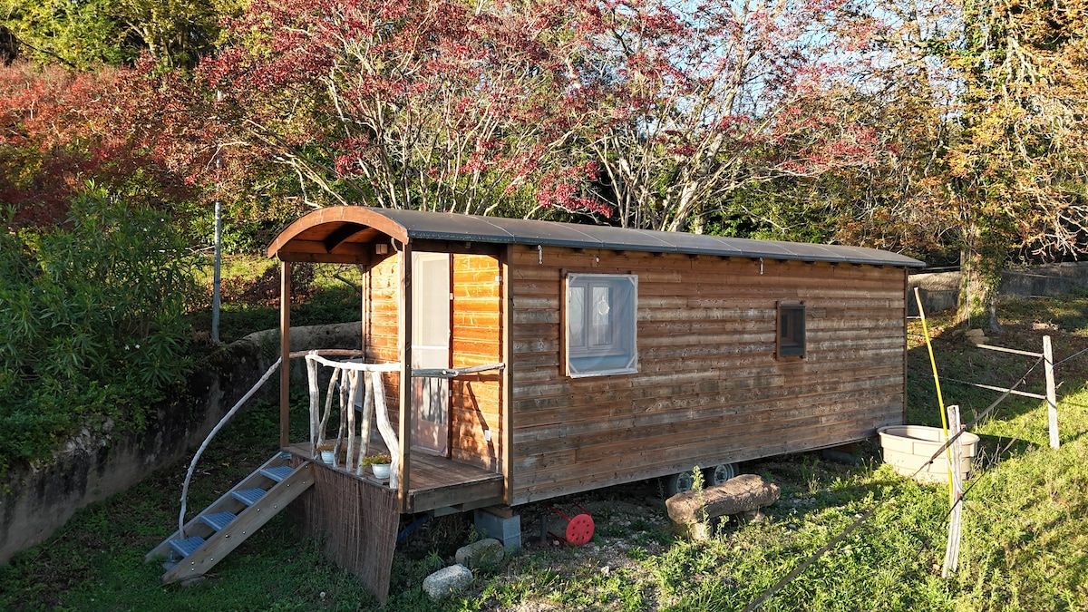 Venez séjourner dans la nature auprès des chevaux. La roulotte en bois de fabrication locale, la Cabriolette, vous permettra de vous reposer au calme dans la nature, avec tout le confort d’une petite maison. Vous aurez accès à un espace extérieur pour manger, un hamac pour faire la sieste, la roulotte dispose d’une cuisine avec plaque induction, d’un espace repas intérieur, d’une salle d’eau avec douche et toilette sèche et d’une chambre avec lit de 140x190cm. Accueil de votre cheval possible.