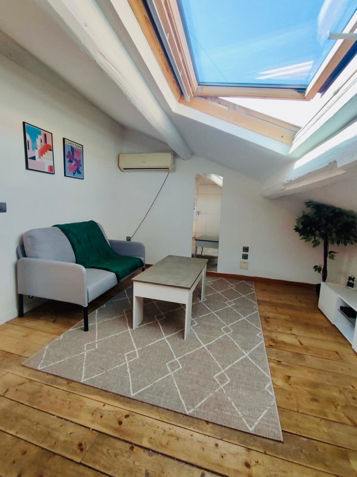 Comfortable, non-smoking 38m² studio. On the 3rd and top floor with elevator. Air-conditioned, comfortable, quiet, and elegant. For urbanites. Equidistant from the train station and the bus station; an 8-minute walk. Breathtaking, unobstructed view of the city's rooftops. Unobstructed horizon overlooking the Pyrenees. Cozy retreat or bars and restaurants. Explore the entire city on foot, 30 minutes from the beach (bus), and 40 minutes from the 9 locks. Ideal for business travelers.