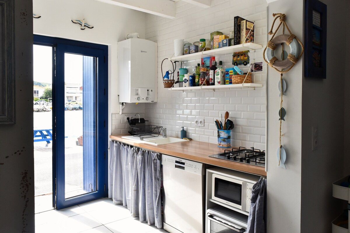Nous vous accueillons au rez-de-chaussée d'une maison de village type vigneronne proche de l'église et des commerces du centre ville. Quiétude absolue et silence dans ce petit loft attenant à une grande cour ensoleillée. Balançoire, hamac, transats, barbecue et douche en extérieur. La plage est à 13 minutes en voiture ou un peu plus en vélo en empruntant chemin dans les vignes et la piste cyclable. La plage du Lido sépare la lagune qu'est l'étang de thau et la mer Méditerranée.