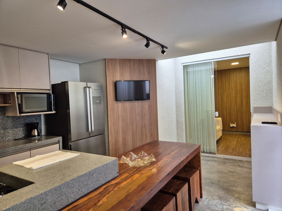 Flat Luxo, Wi-Fi, AR COND., Garagem coberta