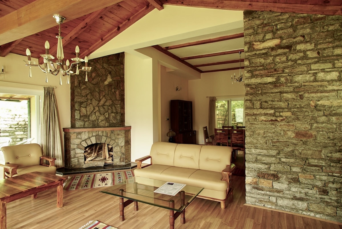 "The cottage is situated in beautiful valley surrounded by farms and orchards. Oak trees forest approachable walk on river basin. A dream getaway from the hustle bustle of city life, it is tastefully furnished and is a fine combination of traditional architecture & modern designs. Guest can absorb the beauty of valley while having scrumptious food at the in-house Kitchen. Property has plenty of outdoor space for sports activities Basketball, Volleyball,Badminton & kids playing area.