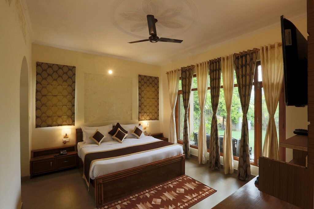 Cozy Room with Dining Area, Restaurant & Pool Access . Unwind in this serene and comfortable private room nestled in the hills of Bhimtal. Perfect for couples, solo travelers, or small families, the room offers a peaceful retreat surrounded by nature. Enjoy access to a beautiful shared dining area, an on-site restaurant serving local and multi-cuisine meals, and a sparkling pool to relax and soak in the sun.