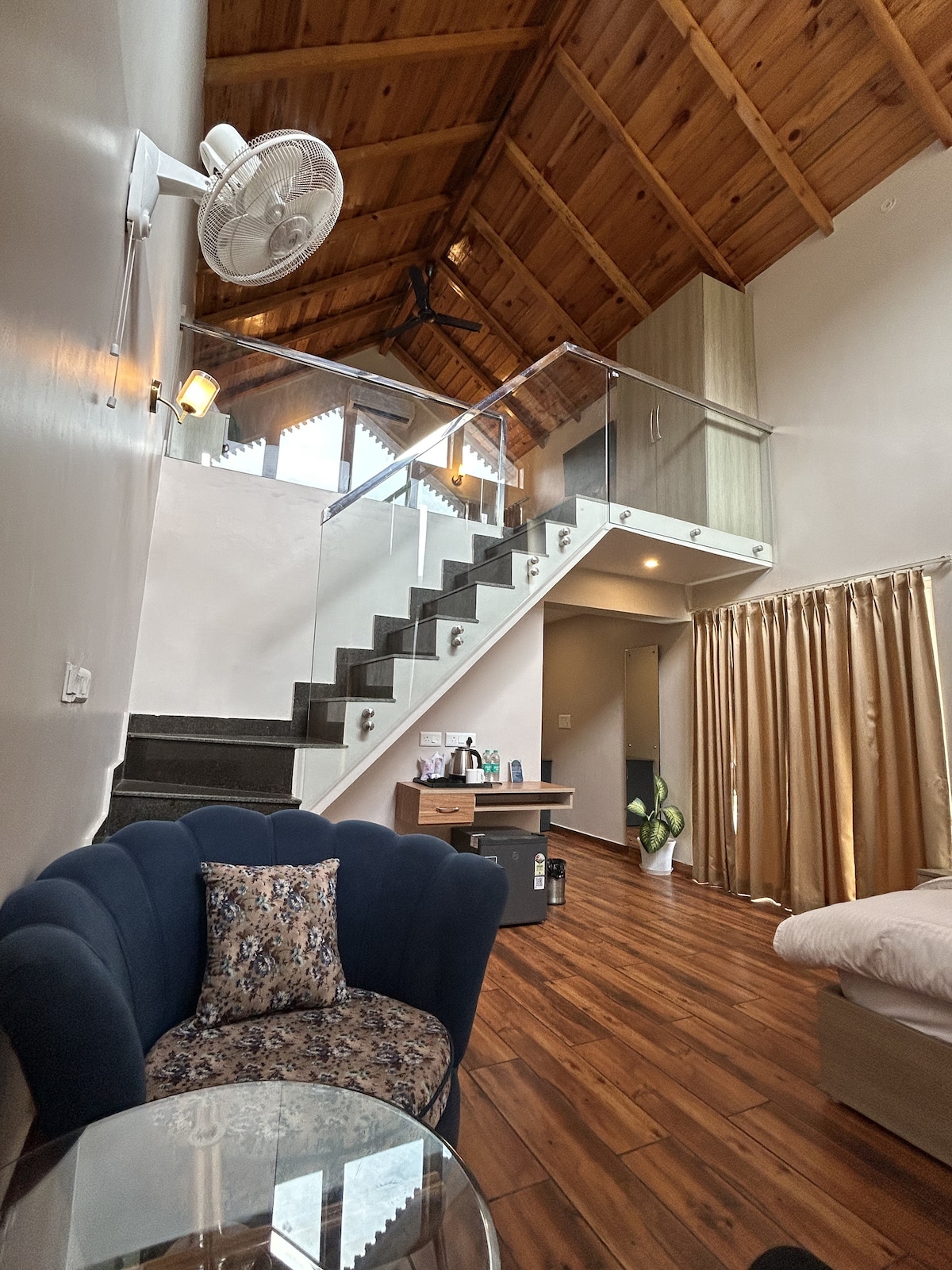 ''Blessing' is a thoughtfully designed artisanal villa in Bhowali, nestled in the foothills of Kumaon on Bhimtal Road, at an altitude of 5600 ft above msl. Full of curated art, cozy nooks, and serene views. It offers kitchens, car parking with EV charging (3kva Level 1) on payment, and other amenities. Great for a quiet getaway or working remotely in nature. It is ideal for an escape from the city hustle, yet be just 10–20 min from Nainital, Kainchi Dham, Bhimtal, Naukuchiyatal, Sattal & Ramgarh