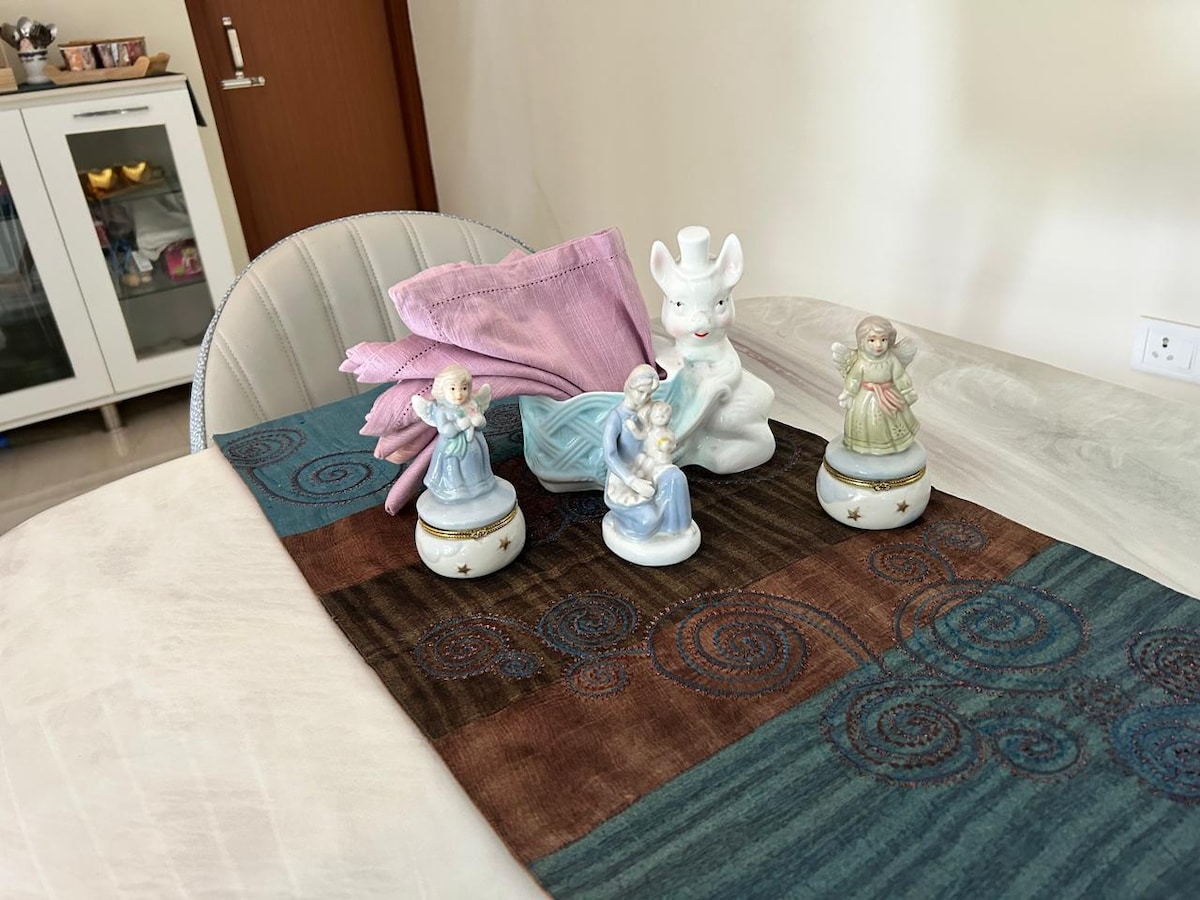 The whole group will enjoy easy access to everything from this centrally located place. An entire floor comprises two bedrooms, a big hall, which can be used as a workstation, kitchen space, lobby, terrace and outdoor area, with three parkings at premise, this property can accommodate complete family. Its a complete independent space. Host lives downstairs on separate part. meals can be provided on order. Property also has a accessible garden with lots of ornamental plants. happy to host