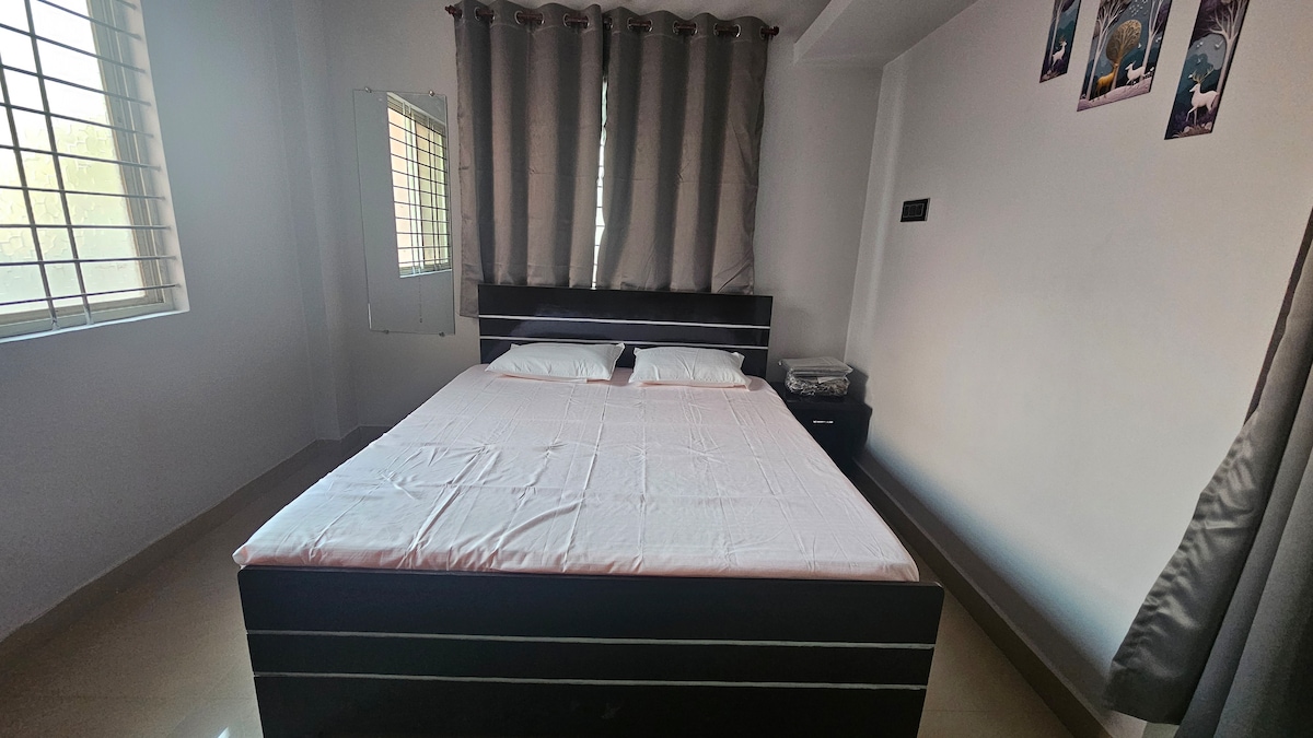 Enjoy a comfortable stay in this spacious studio featuring a king-size bed, attached kitchen, and a separate living area. The space is bright, clean, and well-ventilated, with a private bathroom and a balcony offering open views. Ideal for solo travelers, small families, or working professionals, it provides both comfort and privacy in a peaceful residential setting, while being conveniently located near markets, cafes,RKMP Station and key areas of the city.