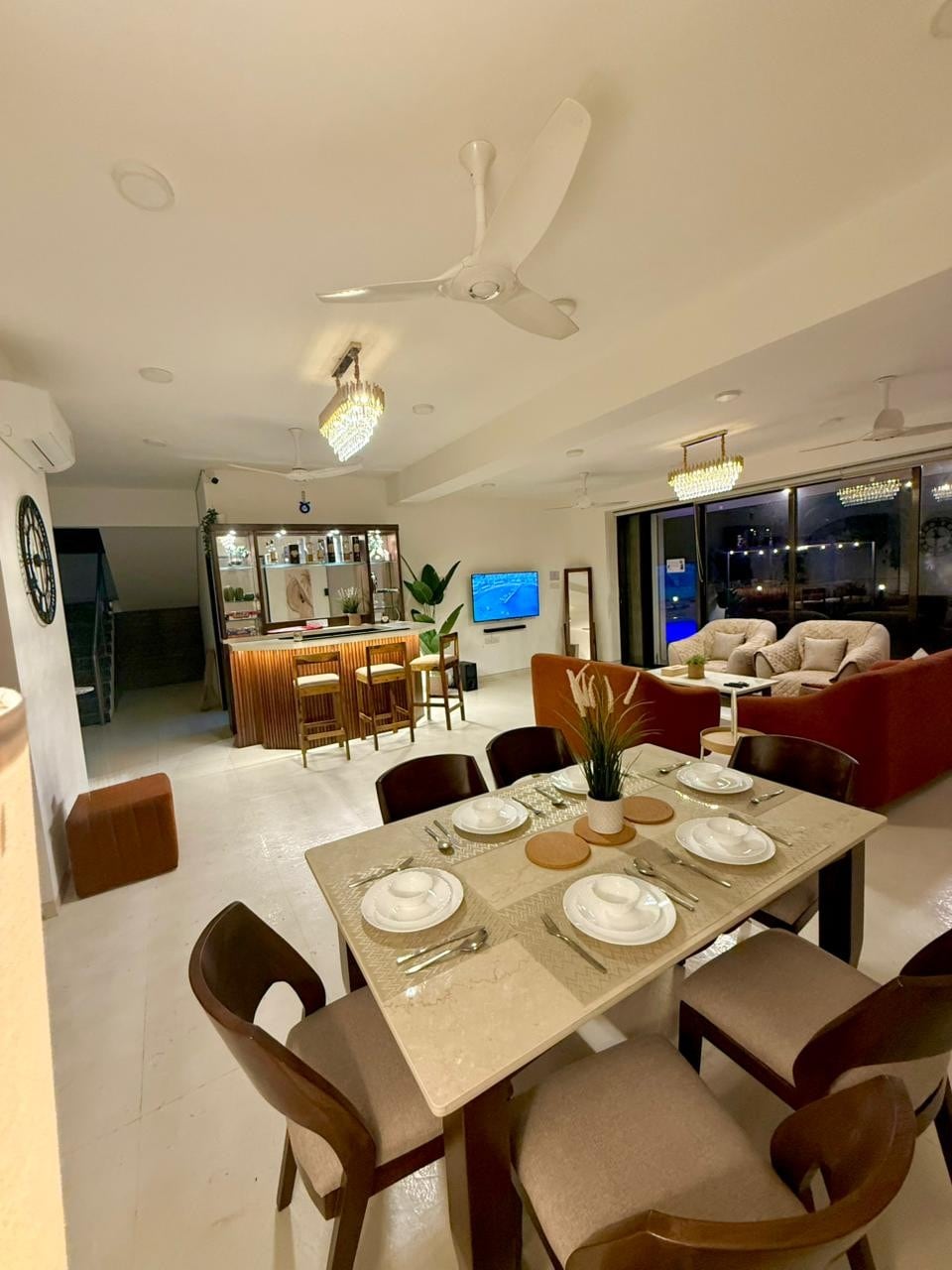 'Villa Elsewhere' is a luxurious, beautiful, private pool villa, just 60-90 mins drive from Mumbai. Surrounded by lush green views of fields, hills, and sounds of nature. The Villa has 3 AC en-suite bedrooms, a large AC living room that opens into a private pool and large deck with a Bar. The kitchen is fully equipped where a chef can make delicious meals (*extra charge). It is pet friendly (*extra fee). BOOK to relax in a calm peaceful vibe, for a get together, or to host the best part ever!