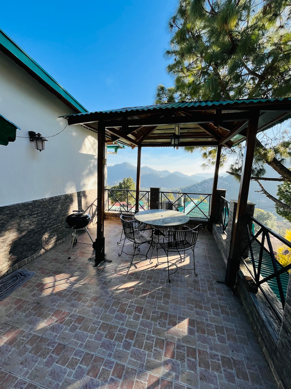 * 3 bedroom, 2 bathroom luxurious cottage * Located on a hill top with the best Himalayan snow views & forest views in the region * Numerous work space in the cottage and outdoors * Lawns around the cottage with ample space * Fully stocked kitchen with all appliances * Wifi, parking, smart TV, board games * Deep picturesque bay windows, barbecue & fire pit, sun beds to laze in, outdoor dining options * Care taker on site