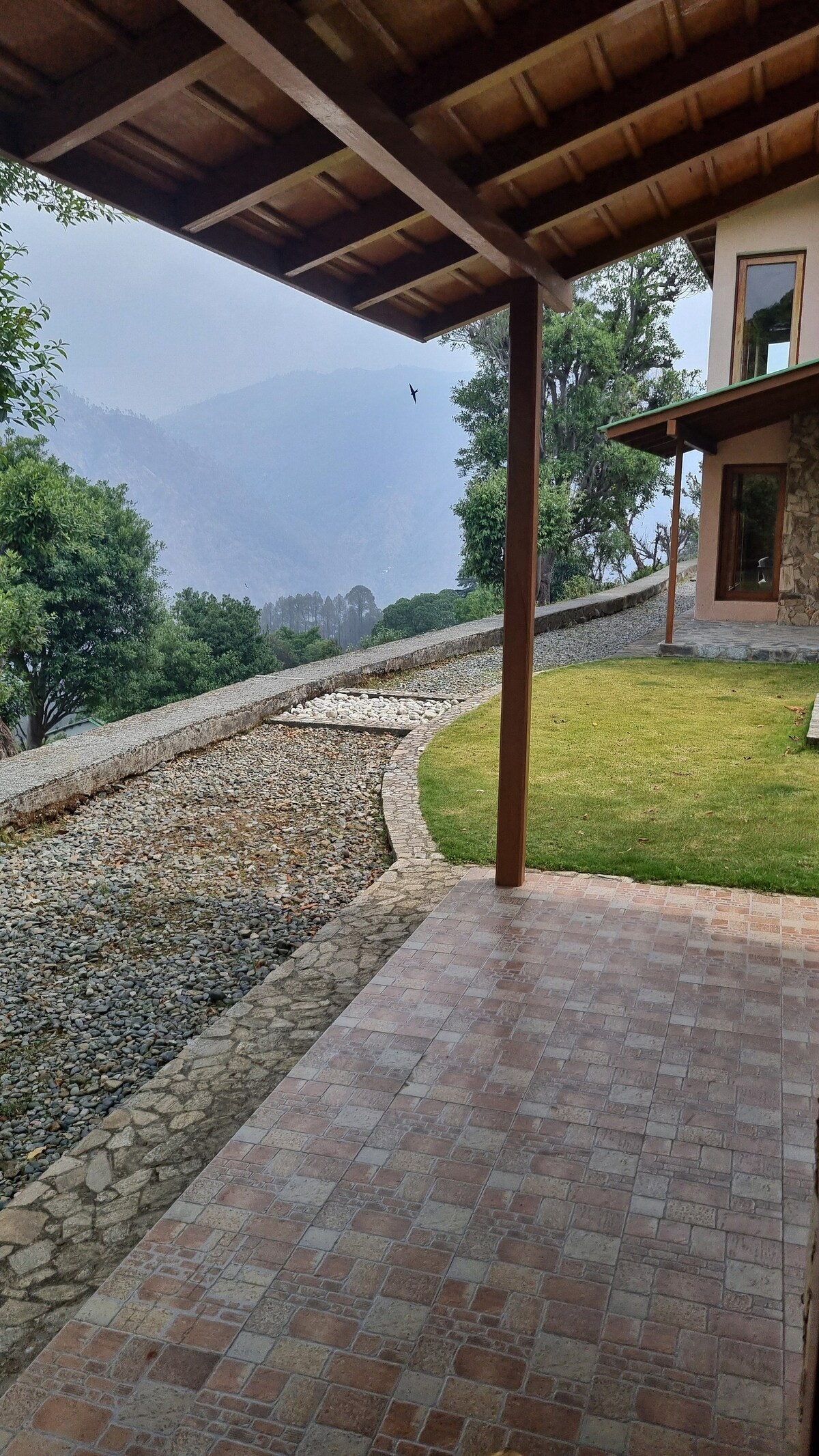 ''Blessing' is a thoughtfully designed artisanal villa in Bhowali, nestled in the foothills of Kumaon on Bhimtal Road, at an altitude of 5600 ft above msl. Full of curated art, cozy nooks, and serene views. It offers kitchens, car parking with EV charging (3kva Level 1) on payment, and other amenities. Great for a quiet getaway or working remotely in nature. It is ideal for an escape from the city hustle, yet be just 10–20 min from Nainital, Kainchi Dham, Bhimtal, Naukuchiyatal, Sattal & Ramgarh