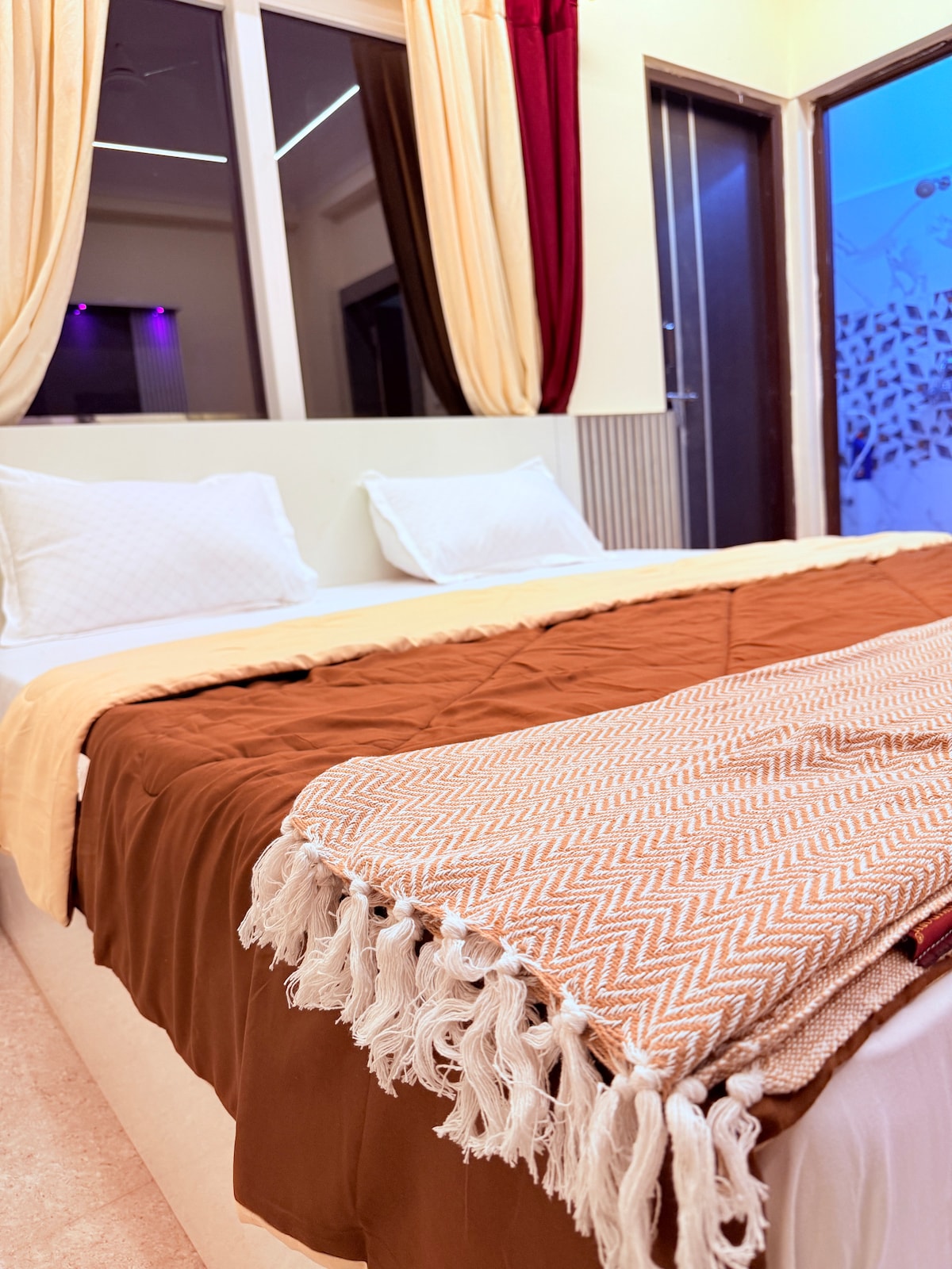 - Our kitchen is fully equipped, making it easy to prepare warm, home-cooked meals during your stay. - Enjoy free unlimited high-speed WiFi. - Both the bedrooms features two king-size beds and AC for maximum comfort. - Living room has a sofa bed and TV comes with complimentary ott subscriptions. - Guests can enjoy a private balcony - The property includes the support of a caretaker, ensuring comfort and assistance whenever required. We look forward to host you.