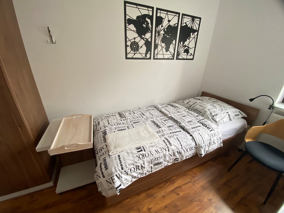 Apartament zlokalizowany 1,5km od centrum miasta. Posiada on 2 sypialnie z telewizorem, w pełni wyposażoną kuchnie z jadalnią oraz łazienkę z pralką. W jednej z sypialni dostępny jest balkon. Przed samym budynkiem dostępny jest nowy plac zabaw dla dzieci. Gość, który wynajął apartament ma go na wyłączność w zależności od ilości osób 1-2 dostęp do jednego pokoju, 3-4 do dwóch pokoi. Zastrzega się, że właściciel ma prawo pobrać dodatkową opłatę za wszelkie wyrządzone szkody.