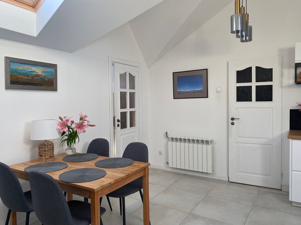 Mieszkanie położone blisko centrum (7km, 10 minut samochodem), w pobliżu przystanek autobusowy oraz bezpłatny parking pod blokiem. Apartament mieści się na osiedlu w miłej spokojnej okolicy. Wnętrze bardzo przytulne z wszystkimi potrzebnymi udogodnieniami, szybkie Wifi, Telewizor 55" z SmartTV (YT, Netflix, HBO GO itd.), kuchnia z wyposażeniem (talerze, kubki, szklanki, sztućce, czajnik, garnki, patelnie, piekarnik z płytą, zmywarka, lodówka, zamrażarka, pralka itd.).