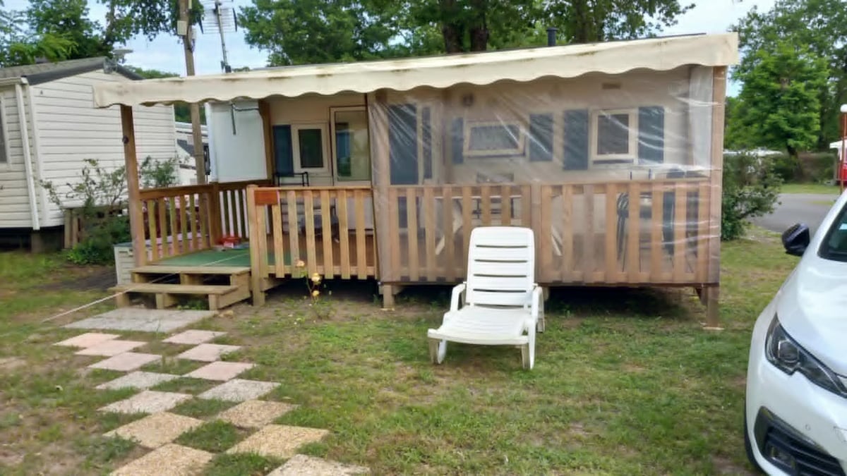 Mobil Home recientemente renovado con ampliación de terraza cubierta, terraza exterior y jardín alrededor para lograr una mayor intimidad. El bungalow cuenta con todo tipo de comodidades y está ubicado en una localización excelente, tranquila y al mismo tiempo muy cerca de la piscina y el parque infantil que incluye una tirolina. Se encuentra dentro del camping municipal Les Pins Bleus, muy tranquilo y familiar, en Labenne Ocean, a 800m de la playa, rodeado de bosque y carriles bici para pasear.