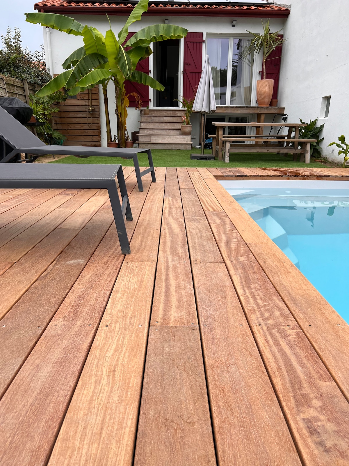 Bienvenue dans notre maison basque en plein centre ville. Le matin vous pourrez aller prendre un petit café aux Halles (5 min) ou sur notre grande terrasse en bois exotique. Vous irez à pied à la Grande Plage ou à La Côte des Basques. La maison vient d’être rénovée et nous avons soigné l'ambiance pour que vous vous sentiez pleinement en vacances. La maison est ultra pratique et à proximité de bons restaurants et de commerces... boulangerie bio, pâtisserie...