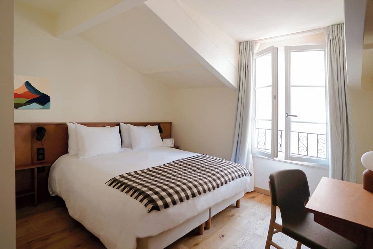 Well-appointed, these 11 - 13sqm rooms are ideal for two people. Bright and refreshing like the Atlantic, simple and warm like a vacation home, the rooms are characterized by natural materials and soft colors. The wall decor is the result of a collaboration with the Departmental Archives of the Pyrénées-Atlantiques.