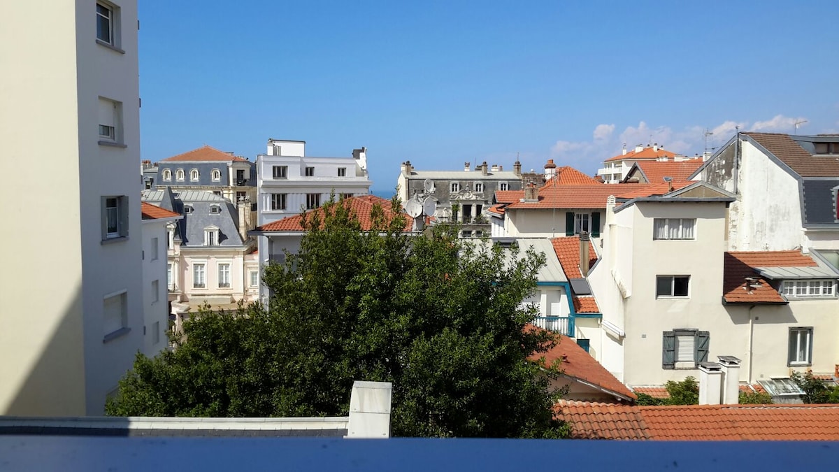 Rare, dans l'hyper centre, se situe mon beau T2 avec parking, un balcon avec aperçu océan face à la célèbre place Ste Eugénie, l'autre donnant sur les commerces de la rue piétonne Mazagran. L'appartement est dans une petite résidence luxueuse avec ascenseur. Il est lumineux et très agréable, permettant de tout faire à pied. Vous y trouverez tout pour un séjour réussi. Nous proposons un service adapté à vos besoins, y compris des PACKAGES WEEKEND AVEC DEPART TARDIF <17H. (nous consulter)