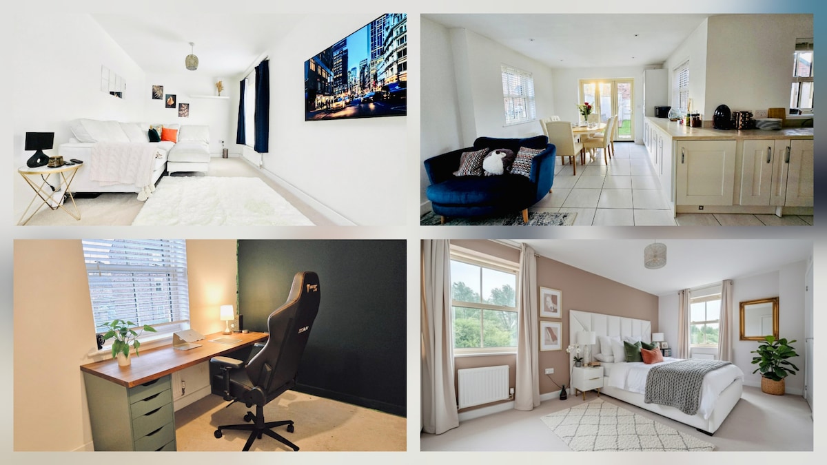 Welcome to our lovely Bicester retreat! This spacious 4-bedroom, 2.5-bath home offers comfort and convenience for families, friends, or business travellers. With 2 king-size beds and 3 single beds, there's room for everyone to relax. Enjoy free Netflix and Disney+, a fully equipped kitchen, and bright, stylish living spaces. Located close to Bicester Village, Oxford, shops, and dining, it's the perfect base for your stay. Make lasting memories in this cosy, well-appointed getaway.
