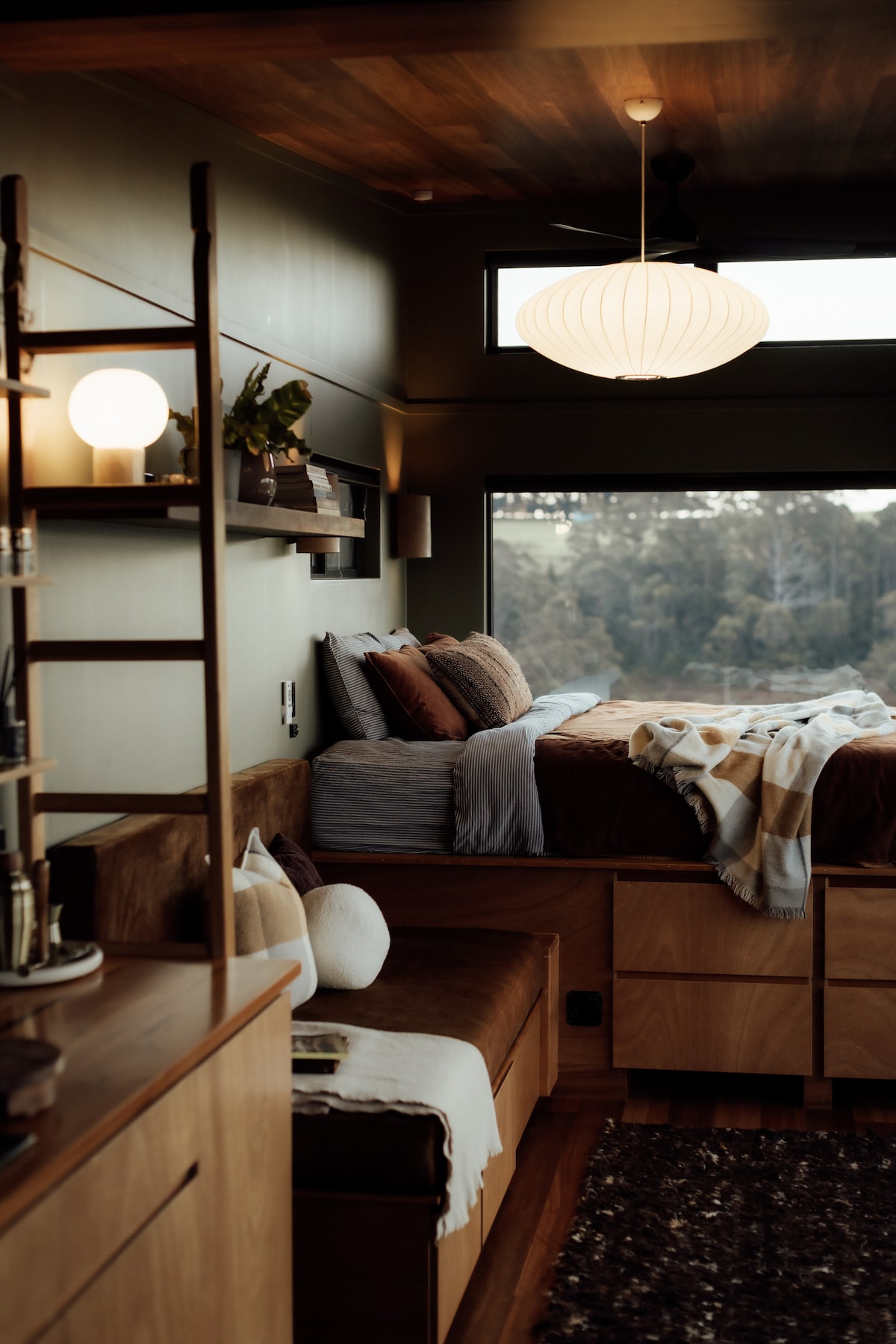 Welcome to The Burrows, a 1860's stone cottage we have sensitively reimagined & restored, opening it up to take in the ever changing view over Freycinet peninsula. A large living space is the heart of the home with a wood fire at one end, feather sofa, armchairs and a custom made window seat overlooking Great Oyster Bay. Both bedrooms have amazing views over the water & our intimate bath house with clawfoot bath & french doors is the perfect place to watch the sunset reflected over the Hazards