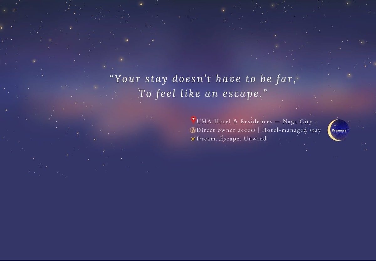 Experience a true hotel stay at UMA Residences, booked directly through the unit owner. Enjoy full hotel services, including 24/7 front desk check-in, concierge, housekeeping, pool, parking, café, and security. This privately owned hotel room features hotel-grade bedding, WiFi, a smart TV, air conditioning, and a hot shower. Located along Magsaysay Avenue, perfect for staycations, business trips, events, family visits, or relaxing weekends in Naga City.