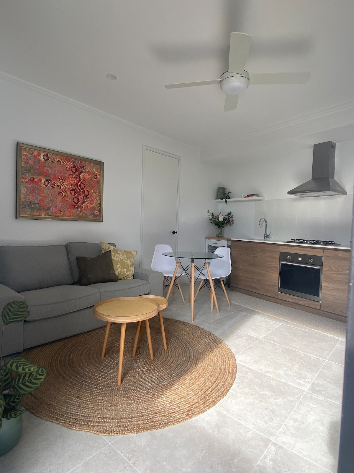 Take it easy at this unique and tranquil getaway. Guests have their own entrance to the downstairs Studio and your hosts live on the premises above ( You may hear the occasional footsteps !) Close to the bus and train or a 12 minute walk to the beach. Shared access to a beautiful garden where you can enjoy your morning coffee. An abundance of shops cafes and restaurants are within walking distance. Both the Regis Aged Care facility and the Guildhall Wedding venue are a few short minutes away.