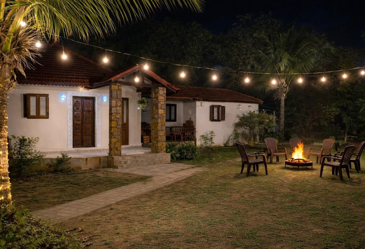 Nestled in a quaint village, our 4BHK bungalow offers opulence & comfort. With a sprawling garden, it's perfect for parties or relaxing stays. Just 20 minutes from Mandvi Beach, a nearby dam provides peaceful evenings. All major tourist spots in Kutch are within 2 hours. Our polite housekeeping staff ensures a seamless experience. Special dinners & decor offered just let us know in advance, Enjoy the cool breeze or warm fireplace for a soothing retreat amidst enchanting surroundings.