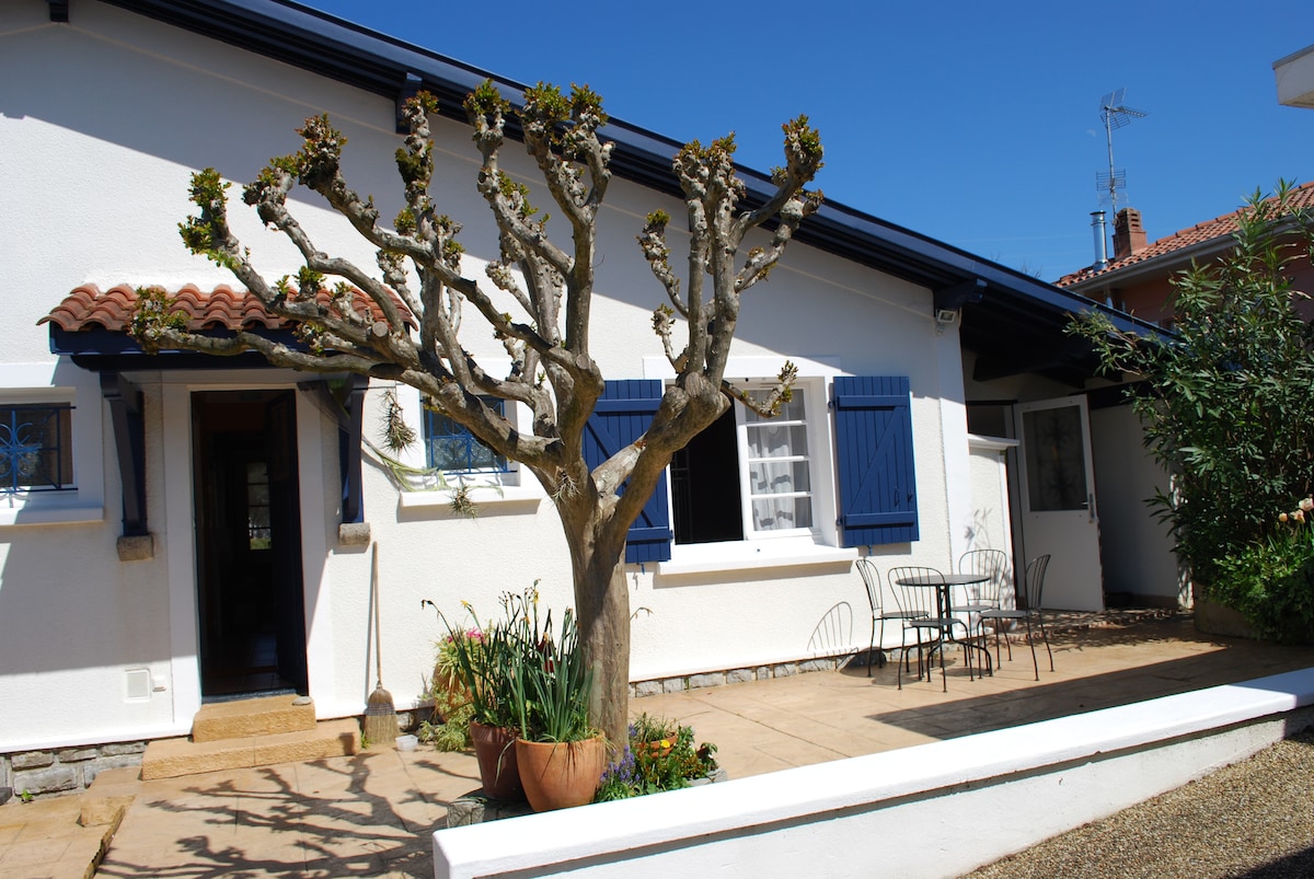 T2 refait à neuf de 32m² avec entrée indépendante, parking & cour privée, dans un bâtiment historique de 1700. Très fonctionnel avec tout le confort moderne et très propre. Idéalement situé pour visiter Biarritz Anglet Bayonne à 10 min et 2,7km des immenses plages des landes, entouré de jardins classés patrimoine paysager. Équipé de tout le confort intérieur, tables en terrasse privée ,parasol, BBQ. ok télétravail équipé Lan+Wifi Mesh