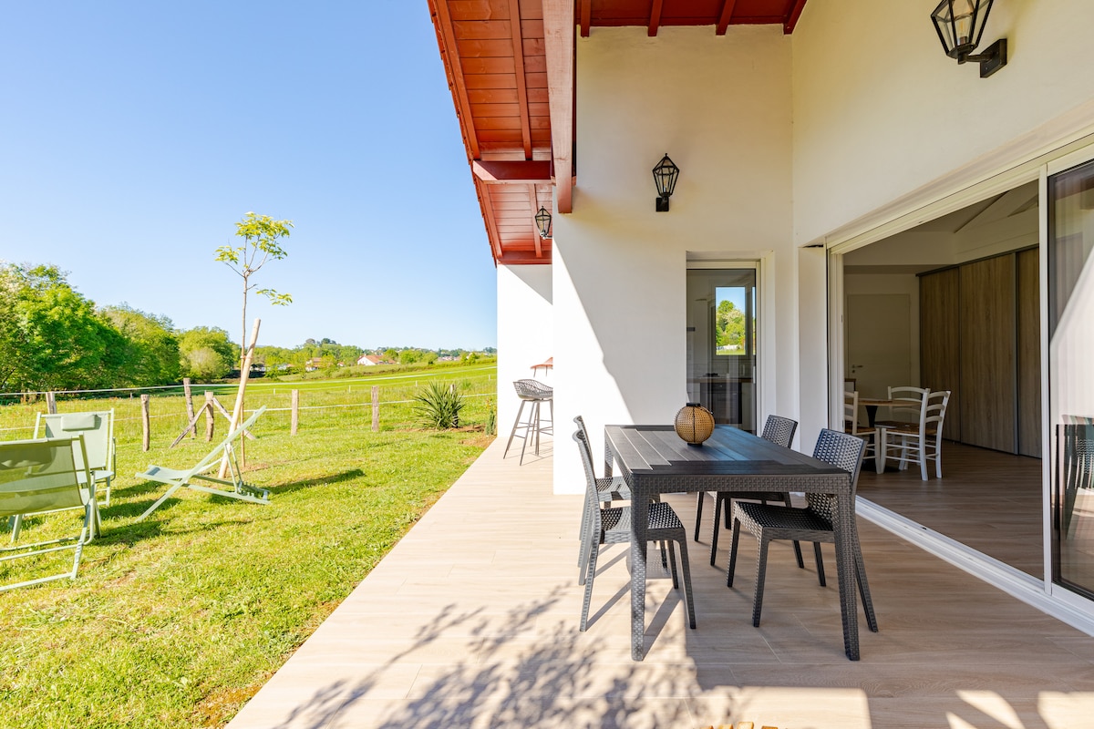 Comme une maison, pour profiter en famille ou entre amis de ce grand espace de plain pied : jardin clos, 3 chambres ouvrant sur terrasse, 2 salles d'eau, 2 wc, grand salon, table de jardin, barbecue et parking privé (très appréciable). Quartier calme, à proximité à pied de la mer, des restaurants; 6 personnes logent confortablement. Les planches de surf, bouées, vélos....pourront être rangés. A pied d'oeuvre des randonnées, l'Espagne, l'arrière-pays.