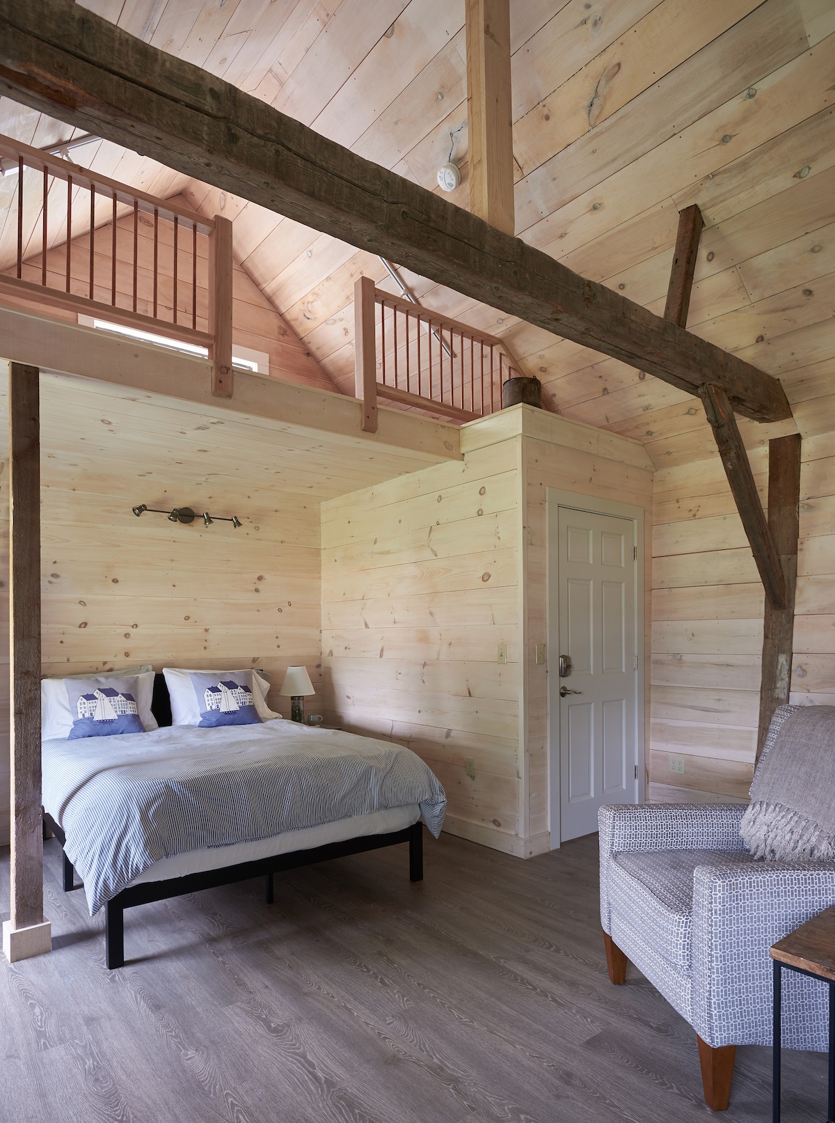 Rare, Portland waterfront studio located in the heart of the historic Stroudwater neighborhood, awaits one or two guests looking for an urban hideaway. The newly created studio occupies a 150 year old post and beam barn situated on the banks of the Stroudwater and Fore Rivers. Enjoy morning coffee on the river swing, meditate to the soothing sound of the nearby waterfall or linger over your favorite glass of wine under the splendid backyard grape arbor.