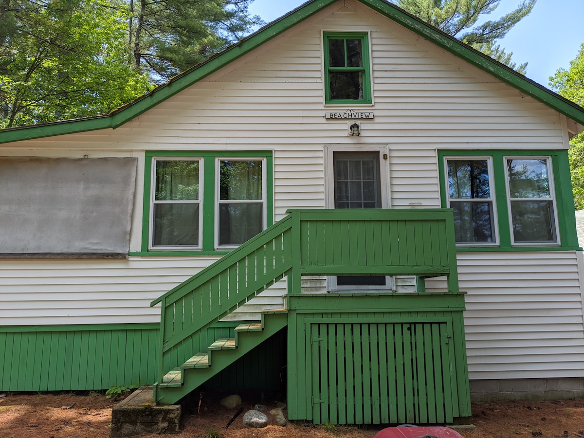 In the water! Two story boathouse. Originally built in 1939 and parked boats in until 1972. Converted to living space in the early eighties. The upstairs consist of a bedroom walk in closet and a balcony. The downstairs is a living room, kitchen and bathroom. Walk out the door to the patio , dock , and beach! You won't find anything closer to the water! The balcony is the perfect place to watch the sunset, thunderstorms, or sip your morning coffee. Watch the fish out the window!