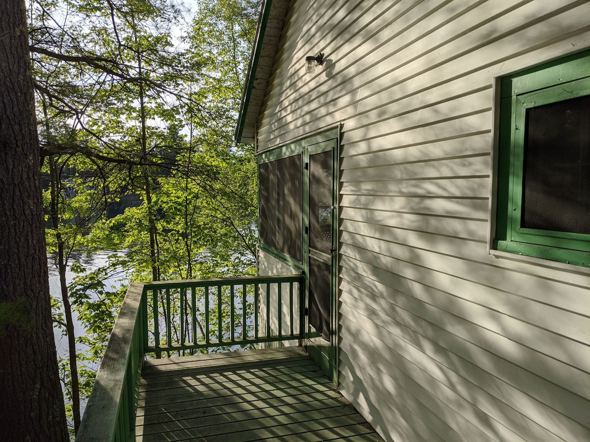 Waterfront GLASS cabin with privacy professionally designed, escape to somewhere really special. Crooked river acres surrounding the house with the river wrapping around the property. Dock with direct access to Sebago lake and state park just minutes away, Outdoor shower, hot tub, hammocks, BIG walk-in shower w/ window. Heated bath floors, ac. See through Fireplace. The property has its own sandy swimming beach, pets are welcome. Come enjoy privacy and the space to run around seconds to Sebago.