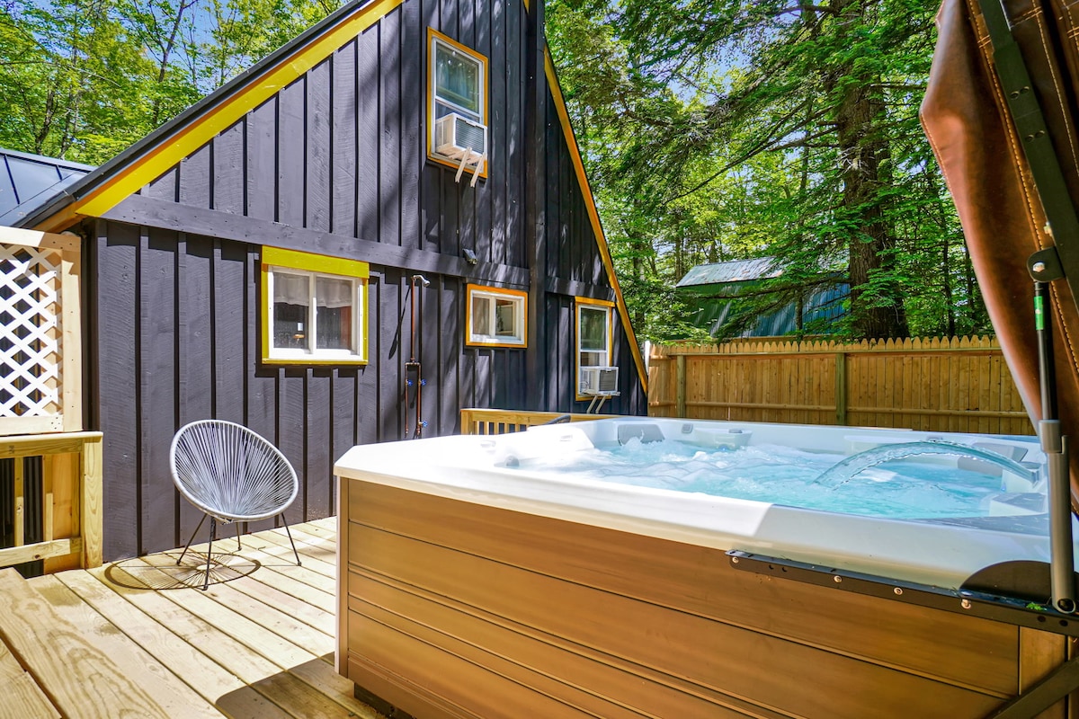 The goal is for you to relax, recharge, enjoy & breathe. We offer a private 3 person HOT TUB , seasonal outdoor warm shower& chiminea firepit , infrared SAUNA, 72" freestanding bathtub for the ULTIMATE spa experience. King bed with an adjustable & vibrating bed base. The cozy 600 sqf home is equipped with everything your heart could desire. Artistic Design around every corner. BOHO swings on the private porch. We abutt a 13 ac conservatory land with walking & hiking trails off the backyard.