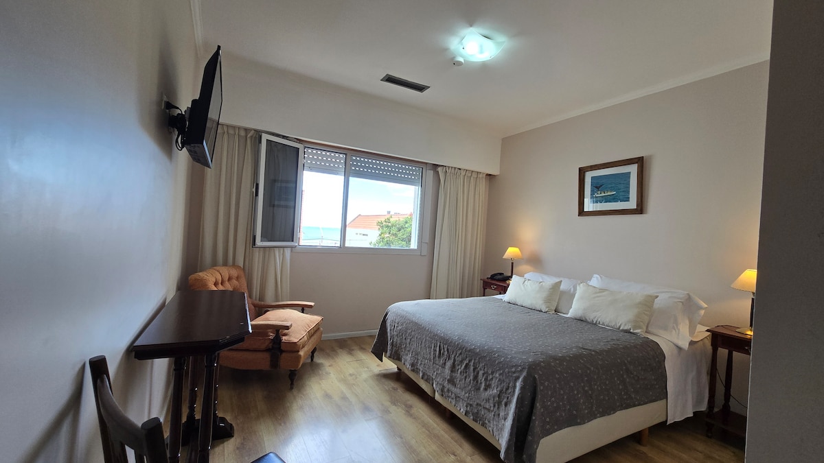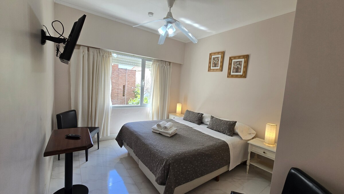 - Incluye desayuno. - La habitación disponible por el momento cuenta con TV led, wifi, ropa de cama, ropero, etc. - Contamos con cochera pero la misma es a disponibilidad. Consultar! - El salón esta disponible las 24hs con TV SMART, sesión de Netflix, microondas, pava eléctrica, dispenser de agua fría/caliente y heladera. - Contamos con una hermosa terraza con parrilla. -Estamos ubicados en zona céntrica y a una cuadra y media del mar.