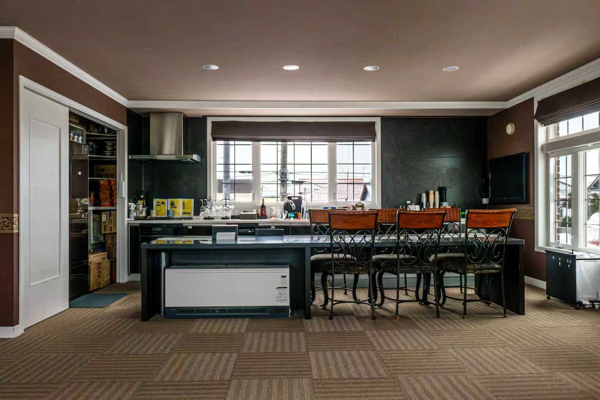 在富良野(Furano)的私人冬季小屋中享受冬日时光,非常适合家庭或大团体旅行,可体验滑雪与独特的雪地BBQ(Snow BBQ)。下雪天早晨会进行清雪(Snow Clearing Included),让您的旅程安心无忧。您可品尝当地肉店的和牛牛肉,享受只有这里才能体验的特别风味。富良野滑雪场和十胜岳后山滑雪开车约30分钟可达。滑雪归来后,可用100英寸投影、卡拉OK和游戏放松娱乐。小屋配有厨房、洗衣机、烘干机及婴儿用品(Family & Kids Friendly),适合长住(Long Stay),并设有烘干装备区。持有旅行业资格、会英语的房东可协助预订餐厅和行程咨询。是您在富良野创造冬季回忆的理想小屋。