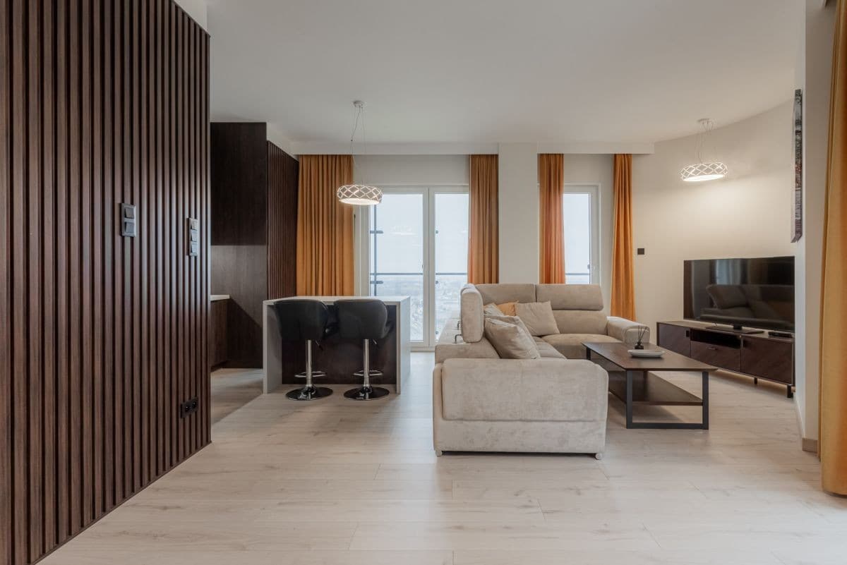 Komfortowy apartament z widokiem na centrum Warszawy urządzony w nowoczesnym stylu. Wyposażony w najwyższej jakości sprzęt. Apartament położony jest w bezpośrednim sąsiedztwie komunikacji miejskiej, gdzie z łatwością dotrą Państwo do najważniejszych miejsc turystycznych czy też biznesowych. A comfortable apartment with a view of the center of Warsaw decorated in a modern style. Equipped with the highest quality equipment. Public transport nearby of apartment.